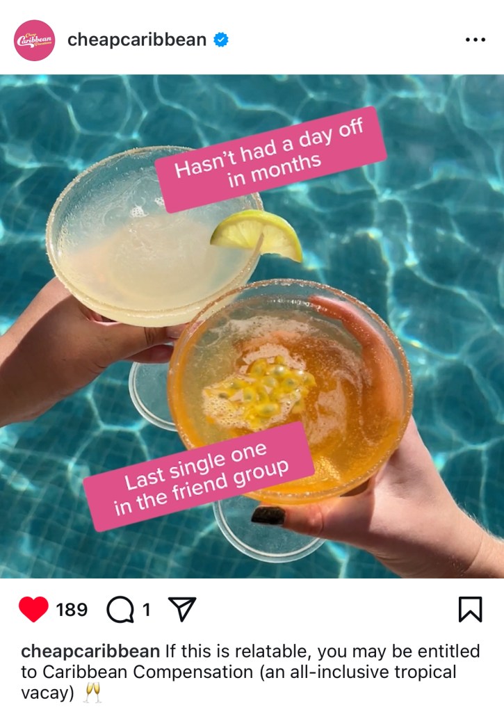 It’s exactly what it sounds like: All-inclusive vacations to the Caribbean and Mexico that don’t break the bank. As AOR, my team developed a new brand campaign in addition to creating fun, scroll-stopping organic social content on a daily basis.