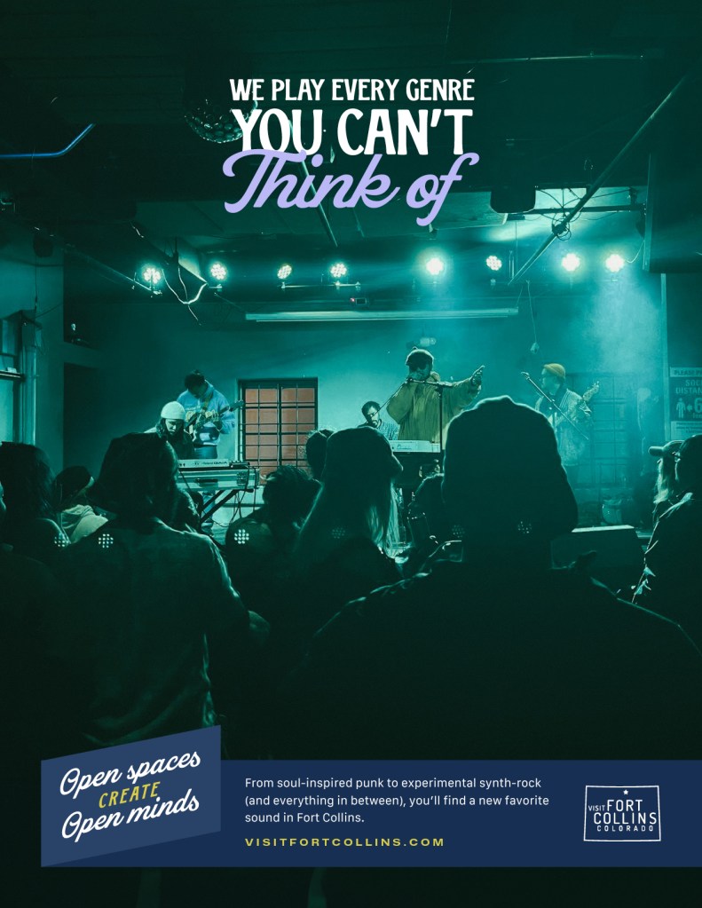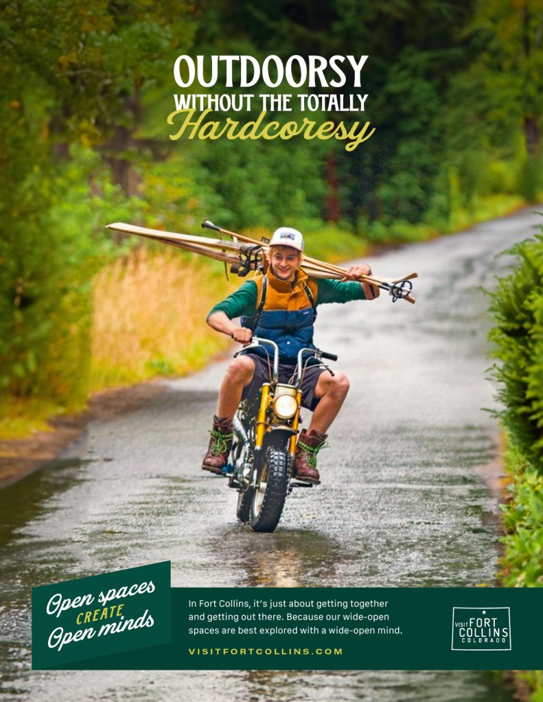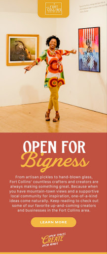 Fort Collins’ open spaces create a community of open minds. To highlight the town’s quirky pride and align with their new brand Open Spaces Create Open Minds, I developed character-filled copy that stakes a claim as the definitive destination for wide open experiences of all kinds, for all kinds of people.